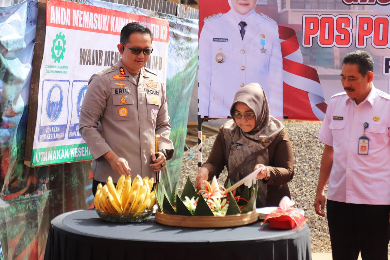 Prosesi peletakan batu pertama menjadi tanda dimulainya renovasi total Pospol Sarangan yang telah berdiri sejak lama.