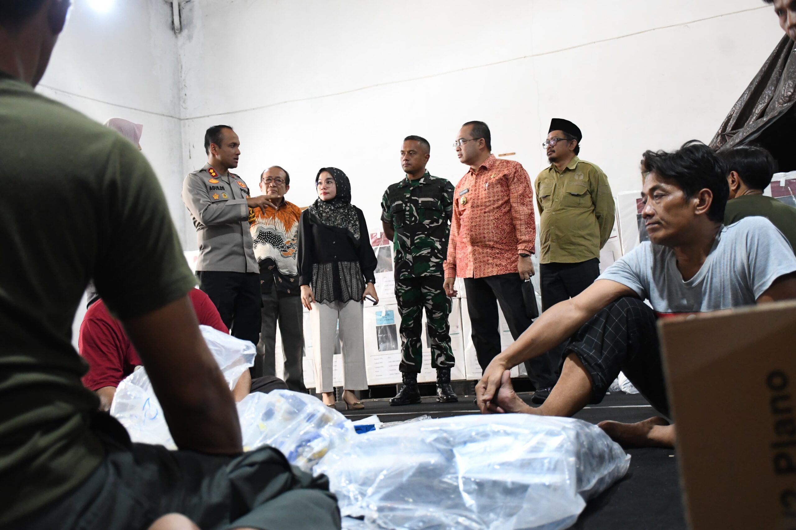 Dipimpin langsung oleh Penjabat (Pj) Wali Kota Madiun Eddy Supriyanto, S.STP., M.M., M.PSDM, rombongan yang terdiri atas berbagai unsur pimpinan daerah, termasuk Kapolres Madiun Kota AKBP Agus Dwi Suryanto, SIK, MH, dan Komandan Kodim 0803 Madiun Letkol Kav. Widhi Bayu Sudibyo, memeriksa secara langsung kesiapan logistik Pilkada.