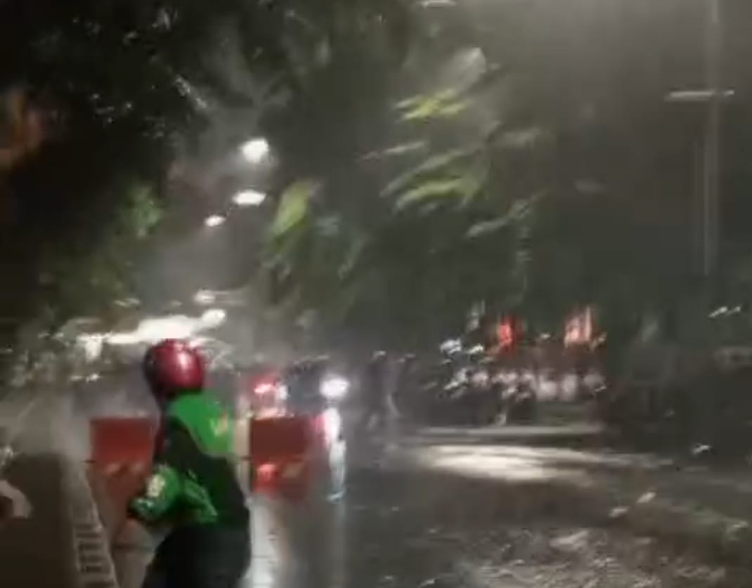 Aksi protes yang berlangsung di bawah hujan deras tersebut sempat memicu ketegangan. Dalam sejumlah rekaman video yang beredar di media sosial, terlihat massa berjalan menuju gerbang Mako Brimob sambil meneriakkan yel-yel. Beberapa ledakan kembang api juga terdengar, yang diduga diarahkan ke kawasan markas, sehingga menciptakan suasana mencekam.