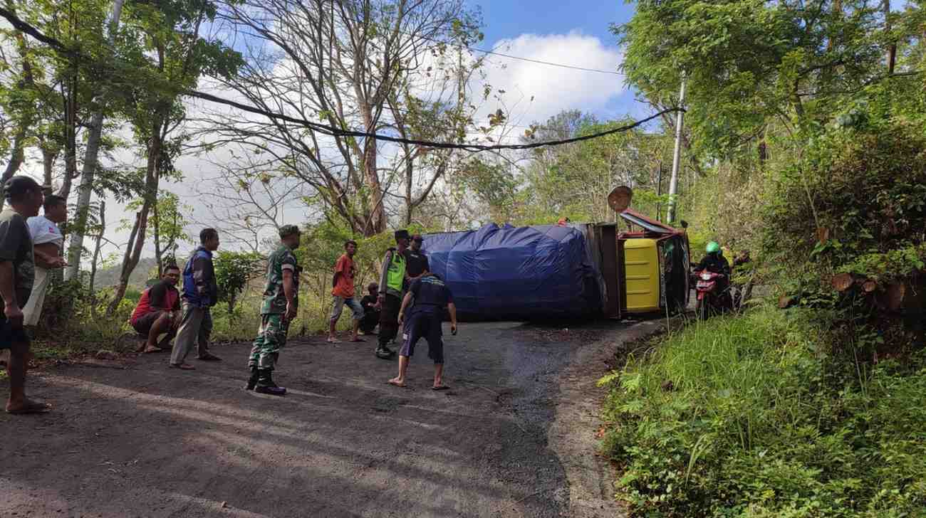 Menurut keterangan pengemudi, mesin truk mendadak mati saat melintas di tanjakan curam. Sopir tidak mampu mengendalikan kendaraan hingga akhirnya terguling dan menutup sebagian badan jalan.