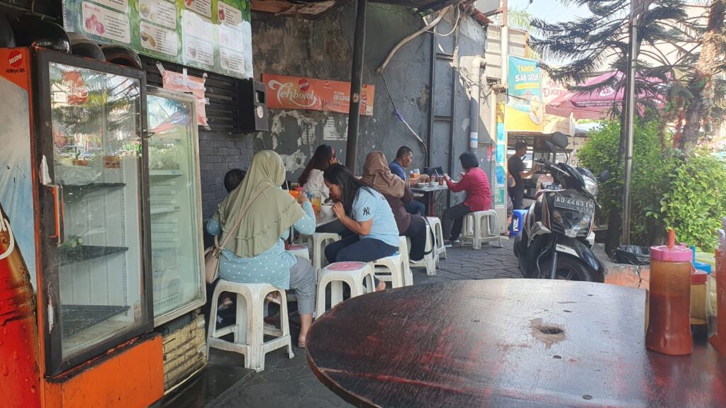 Para pengunjung sedang menikmati Mie Gajah Mas.