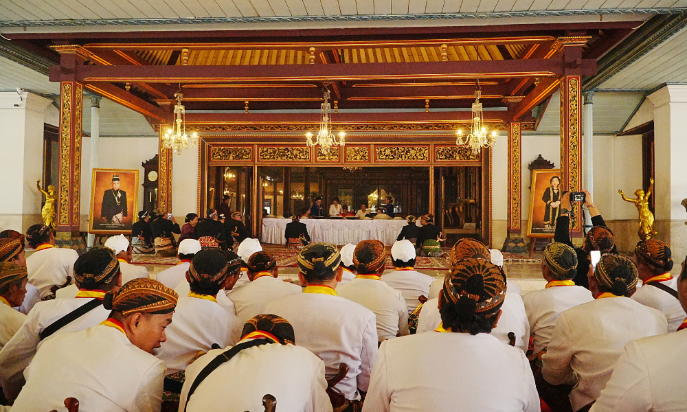 IndonesiaBuzz: 8 September 2025 – Kraton Kasunanan Surakarta Hadiningrat kembali menggelar tradisi sakral Maringaken Sekul atau Kembul Bujana di Kagungan Dalem Sasana Parasdya, Senin (8/9/25). Prosesi ini dipimpin langsung oleh SISKS Pakoe Boewono XIII bersama Prameswari Dalem GKR Pakoe Boewono, didampingi GKR Timoer Rumbai Kusuma Dewayani, GRAy. Devi Lelyana Dewi, GRAy. Ratih Widyasari, KGPH Adipati Dipokusumo, serta para Rayi Dalem, Wayah Dalem, Sentana Dalem, dan Abdi Dalem.