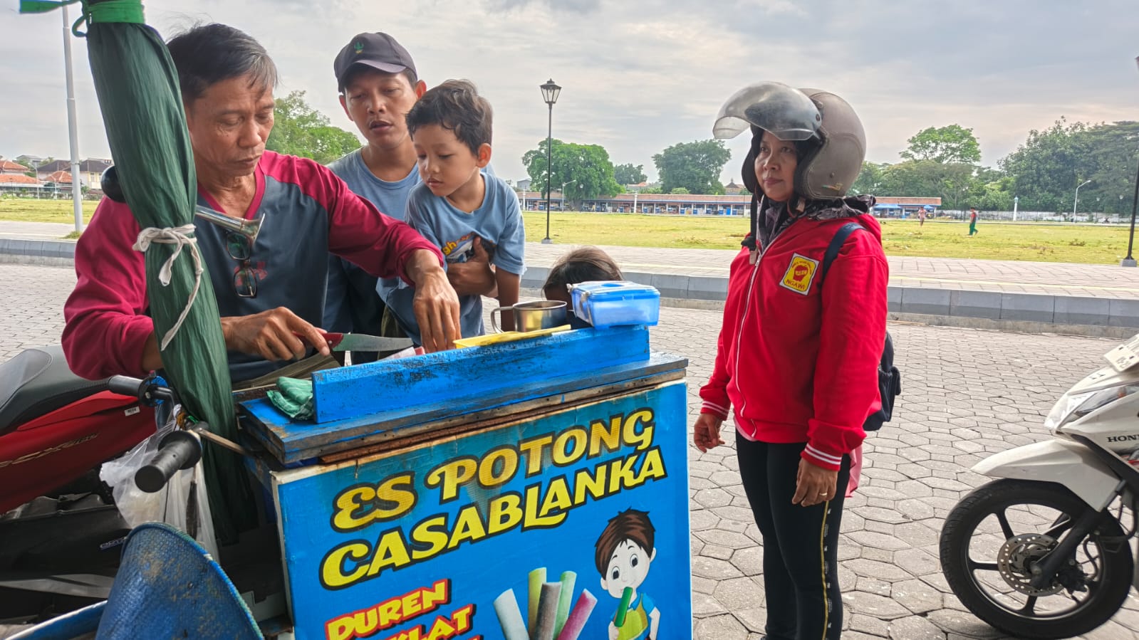 Di tengah panasnya terik matahari, es potong milik hasil produksi sendiri pria Kelahiran Pacitan Jawa Timur ini bukan hanya pelepas dahaga, tapi juga simbol manisnya perjuangan seorang ayah untuk anak-anaknya.