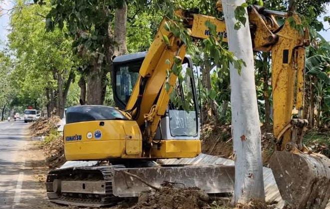 Ekskavator yang dikemudikan Agus Prasetyo dalam insiden seorang pekerja proyek terlindas alat berat, Sabtu (18/10/25) Siang. (foto: As Adil F/Ponorogo)