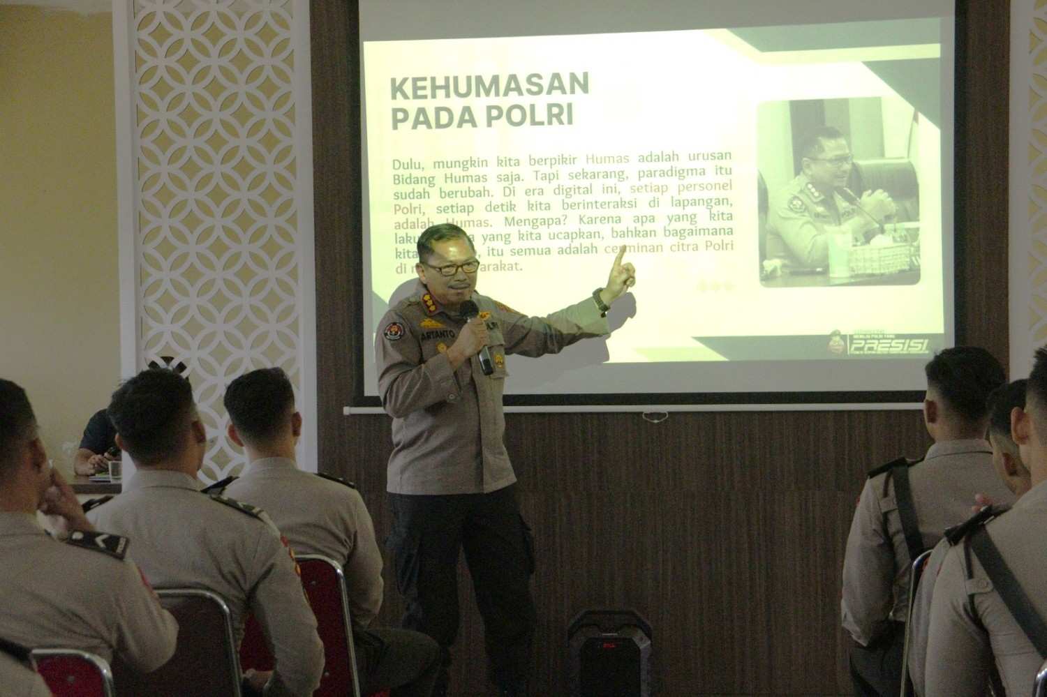 Dalam arahannya, Kombes Pol Artanto menegaskan bahwa keberhasilan Polri dalam membangun citra tidak hanya ditentukan oleh kinerja operasional, melainkan juga oleh bagaimana informasi dikelola dan disampaikan.
