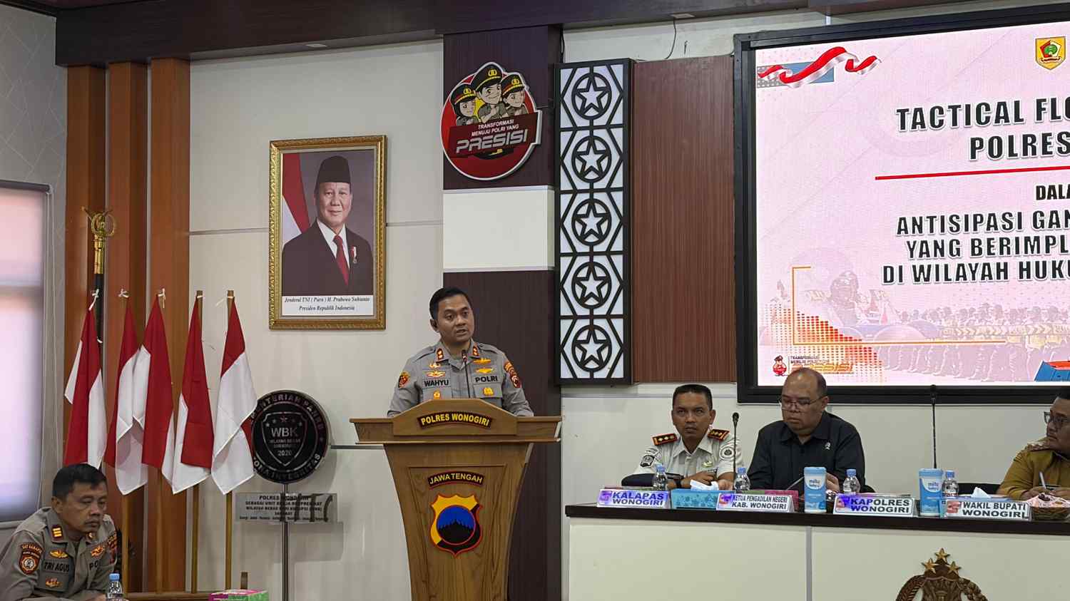 Kegiatan yang berlangsung di Aula Sanika Satyawada Polres Wonogiri tersebut dipimpin langsung Kapolres Wonogiri AKBP Wahyu Sulistyo, serta dihadiri unsur Forum Koordinasi Pimpinan Daerah (Forkopimda). Hadir dalam kegiatan tersebut Wakil Bupati Wonogiri Imron Rizkyarno, perwakilan Kodim 0728/Wonogiri, Kejaksaan, Pengadilan Negeri, Lembaga Pemasyarakatan (Lapas), kepala organisasi perangkat daerah (OPD), pejabat utama Polres, hingga para Kapolsek jajaran.
