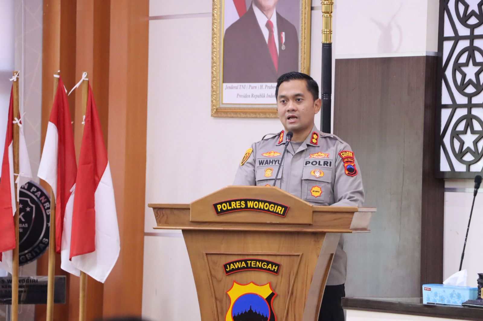 Kegiatan ini dipimpin langsung oleh Kapolres Wonogiri AKBP Wahyu Sulistyo, didampingi Wakapolres Kompol Parwanto, serta diikuti oleh para Kabag, Kasat, Kapolsek, perwira, dan personel Polres Wonogiri.
