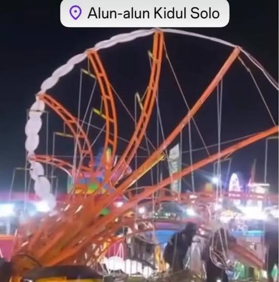 IndonesiaBuzz: Surakarta, 28 April 2025 – Sebuah wahana ayunan putar ambruk saat uji coba di arena Pasar Rakyat Surakarta yang digelar di Alun-Alun Kidul, Sabtu (26/4/2025). Beruntung, tidak ada korban jiwa dalam insiden tersebut.