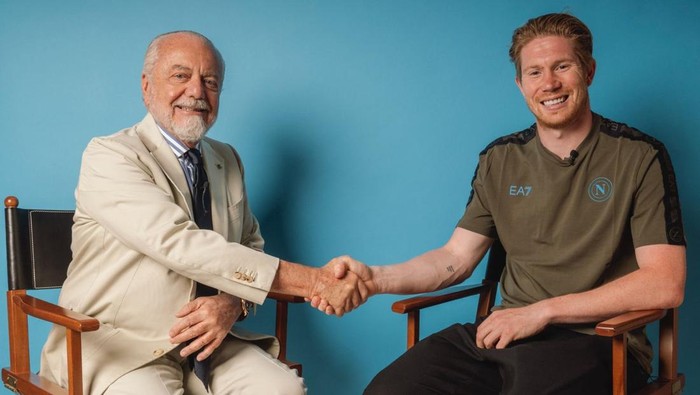 Presiden Napoli, Aurelio De Laurentiis, juga turut menyambut kedatangan De Bruyne. Ia mengunggah foto tengah bersalaman dengan mantan kapten Belgia tersebut dan menulis, “Selamat datang Kevin.”