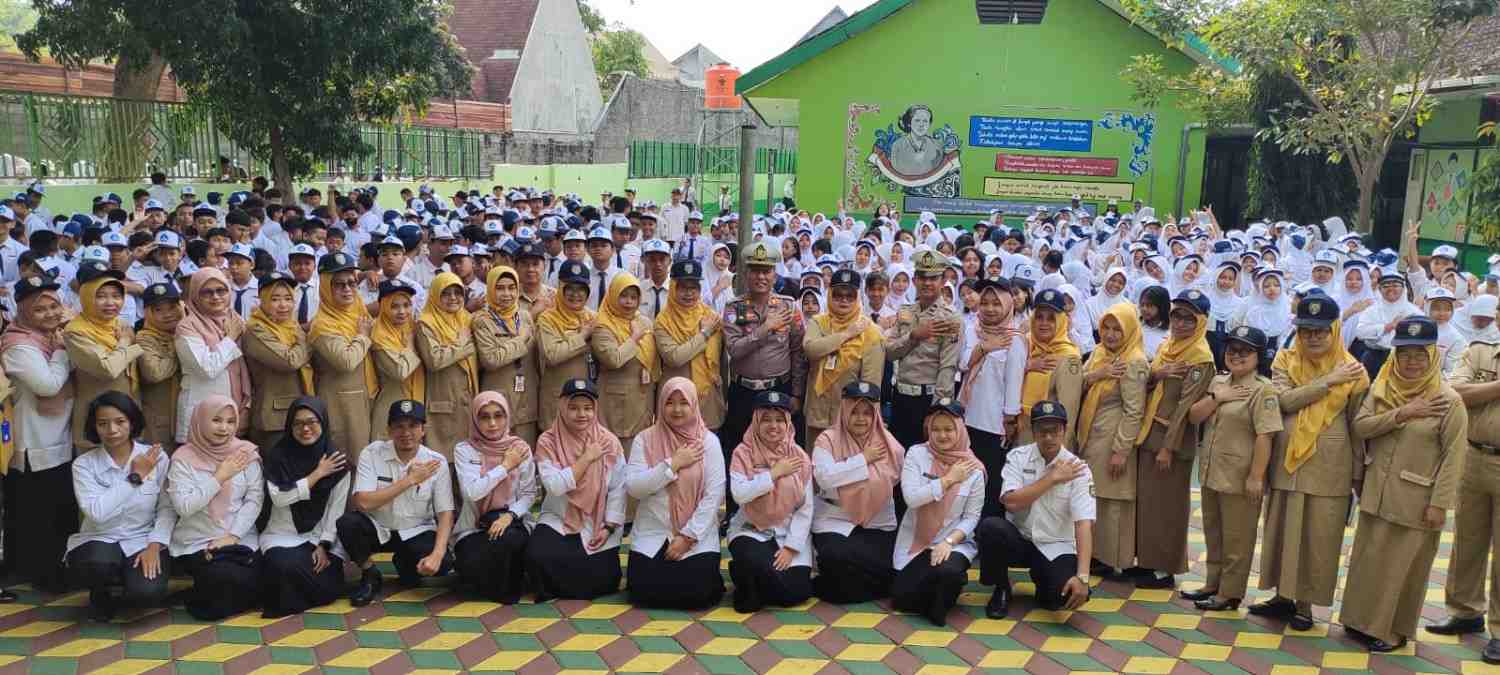 Kapolres Madiun Kota bersama keluarga besarSMPN 13 Kota Mdiun. Senin, (8/9/25) siang. (foto: Humas Polresta Madiun)