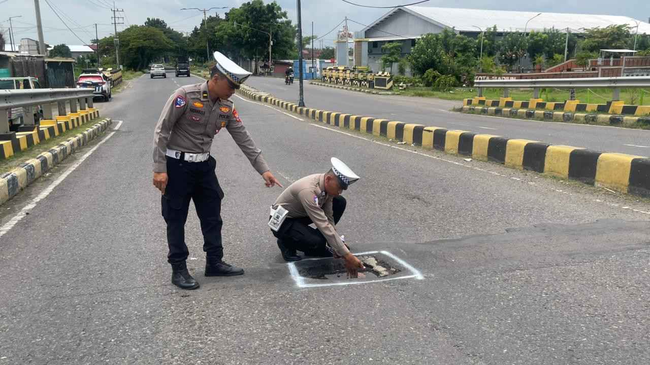 “Anggota kami melaksanakan survei dan memberikan tanda pada jalan berlubang agar pengendara lebih waspada saat melintas. Kami juga telah berkoordinasi dengan instansi terkait supaya segera dilakukan perbaikan, mengingat kondisi ini berpotensi menimbulkan laka lantas,” jelasnya.