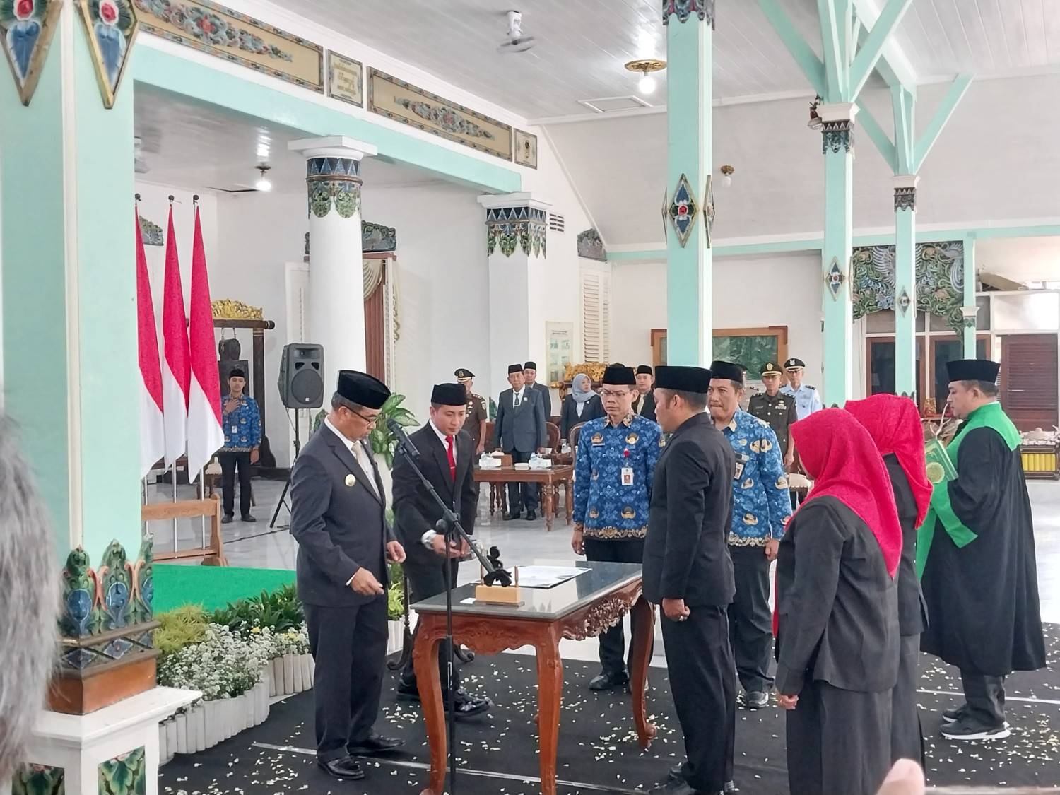 Pelantikan yang digelar di Pendopo Muda Graha tersebut sekaligus menandai pengisian jabatan strategis tertinggi di kalangan aparatur sipil negara (ASN) di lingkungan Pemkab Madiun.