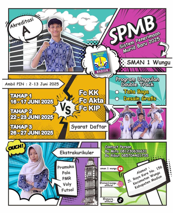 IndonesiaBuzz: Madiun, 11 Juni 2025 – SMAN 1 Wungu, sekolah negeri unggulan di Kabupaten Madiun yang telah mengantongi akreditasi A, kembali membuka pendaftaran siswa baru melalui Sistem Penerimaan Murid Baru (SPMB) Tahun 2025.