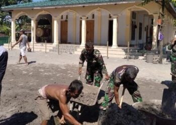 Serda Ladi, Babinsa Binade bersama beberapa anggota Koramil Tipe B 0802/12 Ngrayun hari ini ikut gotong royong melaksanakan kerja bakti ...