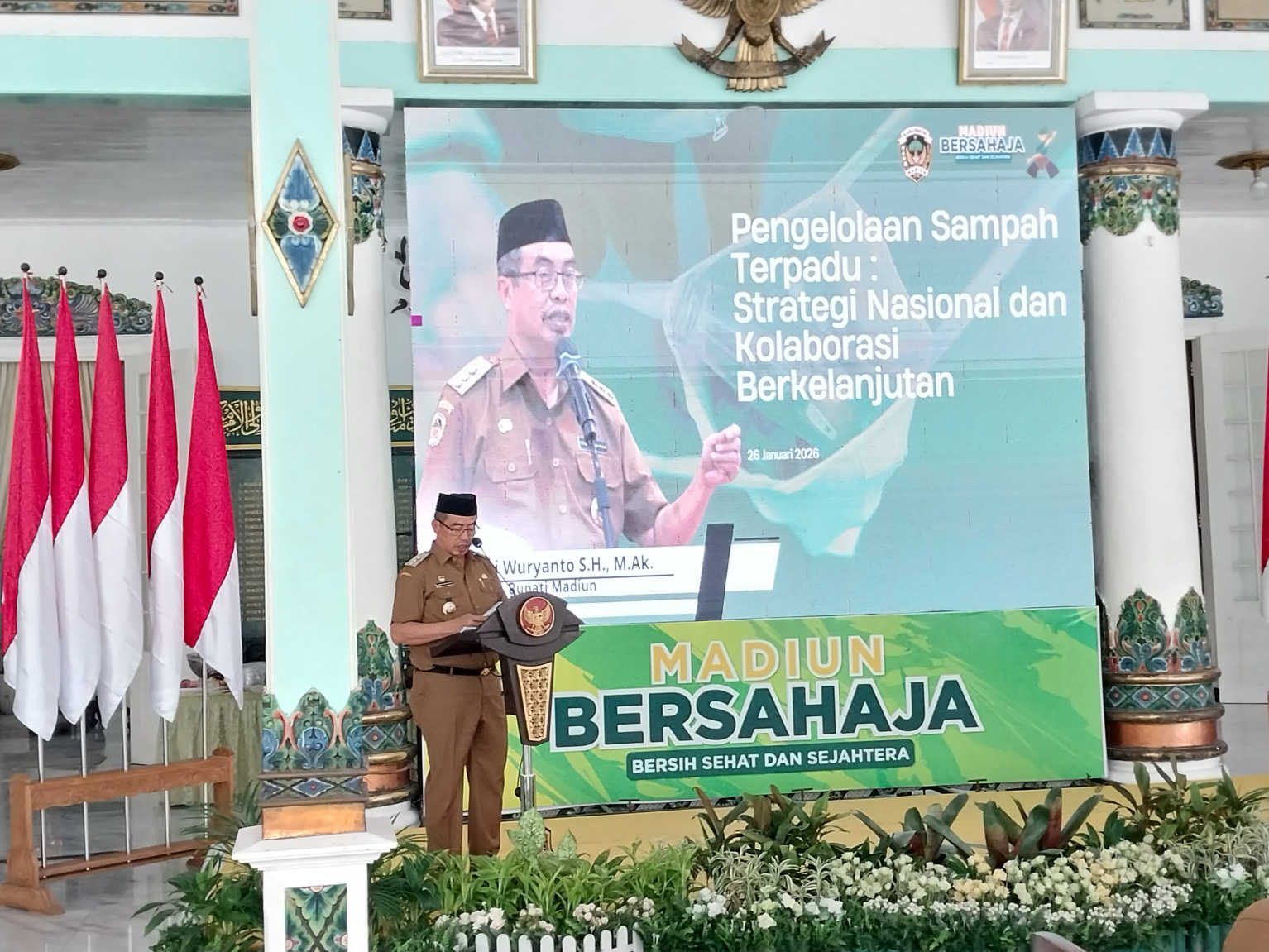 Langkah tersebut ditegaskan dalam Gathering Strategi Pengelolaan Sampah Terpadu yang digelar Dinas Lingkungan Hidup (DLH) Kabupaten Madiun di Pendopo Muda Graha, Senin (26/1/2026).