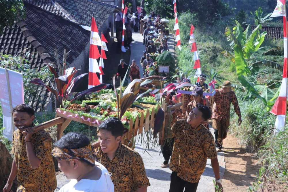 Tumpeng dari masing-masing RT di Desa Conto saat diusung warga