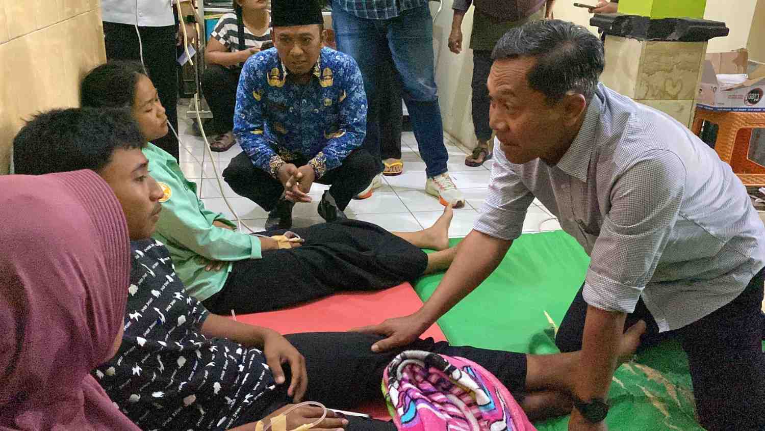 Wakil Bupati Ngawi, Dwi Rianto Jatmiko, saat meninjau kondisi para siswa sekaligus berdialog dengan sejumlah korban untuk memastikan penanganan berjalan optimal, Rabu (1/10/25) Siang. (foto: dok. Esaputra /Koresponden Ngawi)